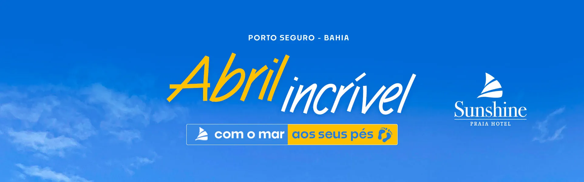 O seu Abril Incrível é aqui no Sunshine Praia Hotel, onde o mar de Porto Seguro está literalmente aos seus pés. Viva a experiência de se hospedar na praia mais famosa da Bahia com o conforto e a energia que só o nosso paraíso oferece. Aproveite o sol de abril com pé na areia e uma vista inesquecível em cada amanhecer. Não perca a oportunidade de transformar suas férias em um momento único com nossas condições exclusivas para este mês. Garanta sua reserva agora e venha sentir a brisa do mar no Sunshine Praia Hotel!